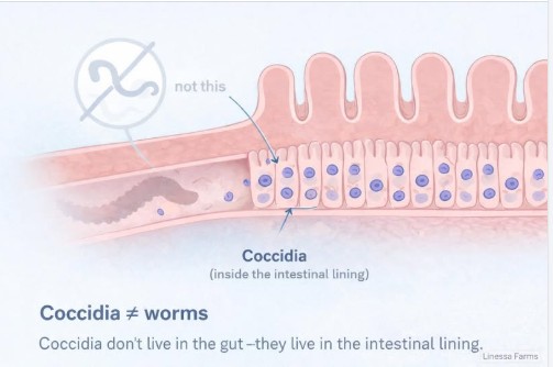 Coccidia is one of those topics that causes confusion because most people picture parasites the same way — something living in the gut, stealing nutrients, and easily handled with a dewormer. Coccidia is different.