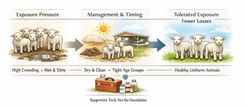 Why do animals in the same environment have such different outcomes? The answer usually isn’t luck. It’s exposure pressure and timing. Exposure is normal. Disease is not. Coccidia are everywhere sheep and goats are. Exposure alone does not mean disease.